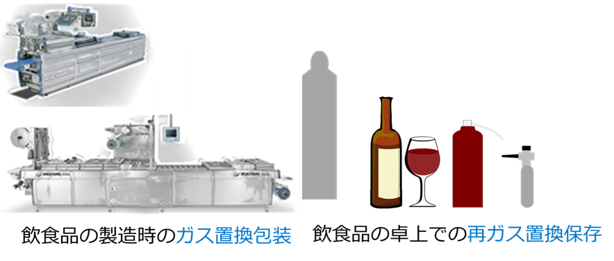 ガス置換包装・保存は飲食品や工業品のロングライフ化のため幅広く使用されています。