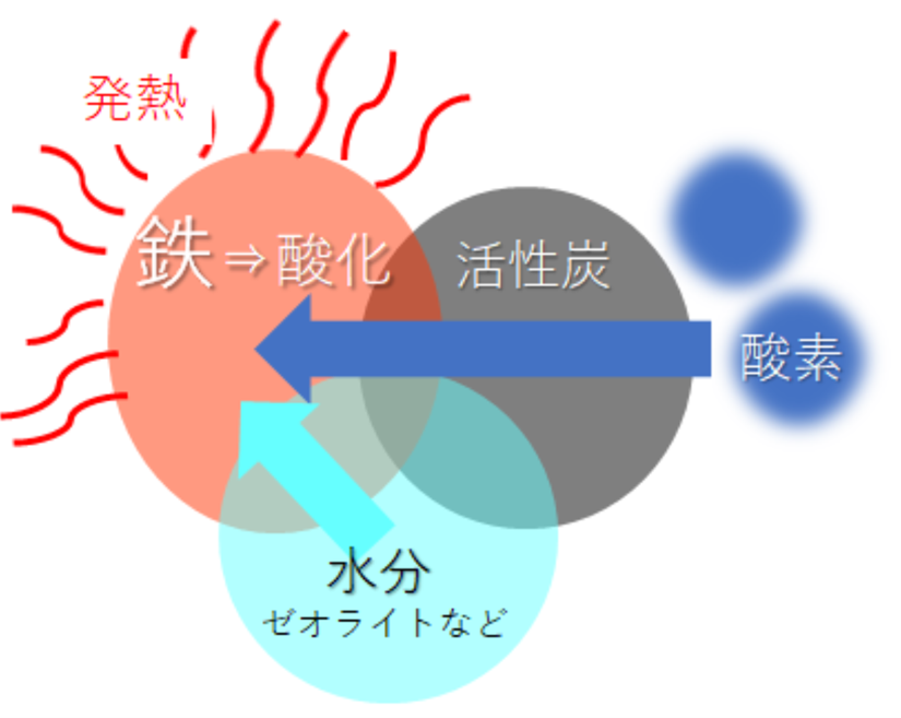 多くの脱酸素剤の成分は鉄、活性炭、食塩、水分を含むゼオライトやバーミキュライトなど、発熱カイロと同じです。