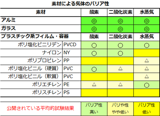 プラスチック系の食品保存袋やコンテナケ-スは酸素や水分を透過します。